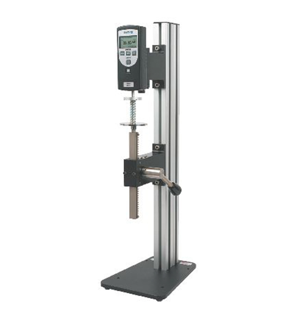 The test stand may be equipped with a quick-action lever or precision handwheel for controlling crosshead speed and travel.