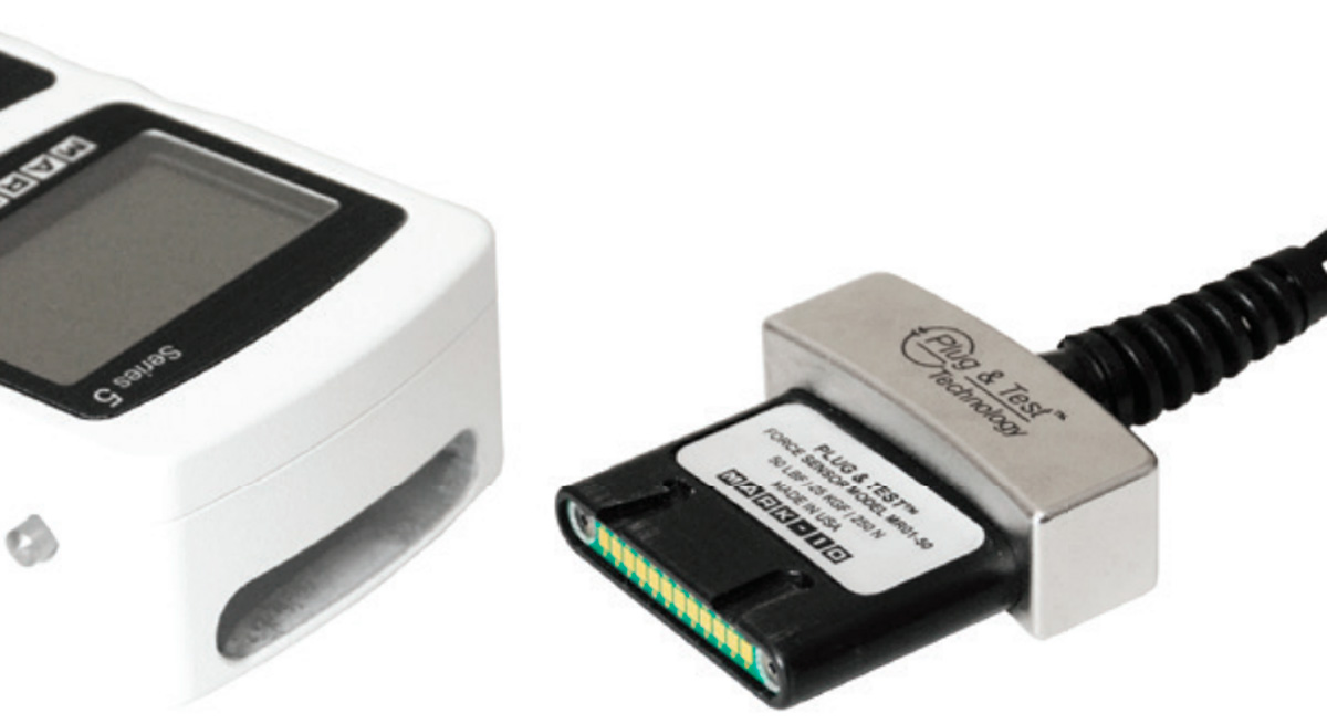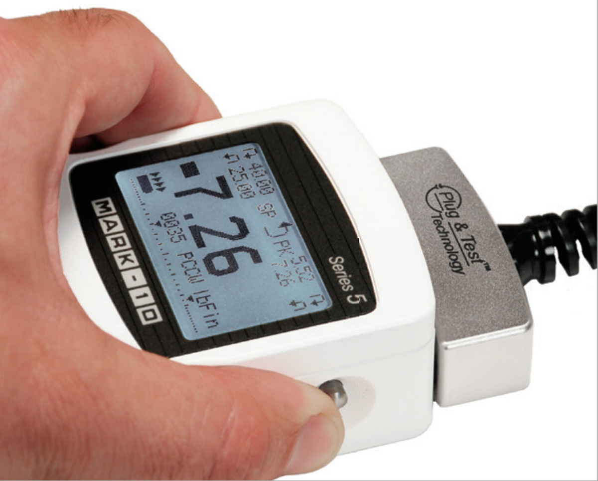Unique Plug & Test® technology allows for interchangeable sensors to be used with a Mark-10 indicator. All calibration and configuration data is saved in the smart connector.